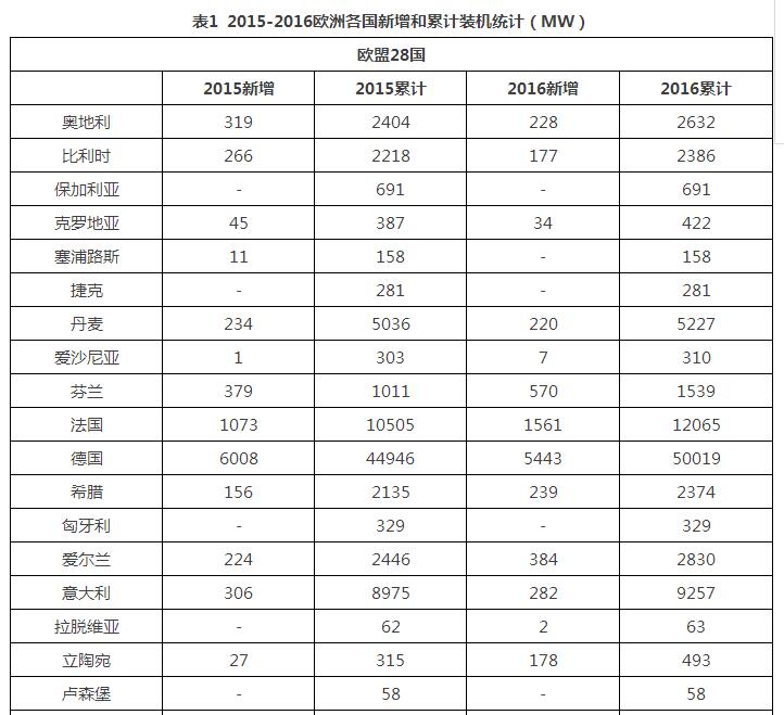 風電裝機占到了歐洲2016年新增電力裝機的51%;