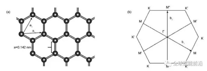 圖1石墨烯的結(jié)構(gòu)特征:(1)晶體結(jié)構(gòu);(2)布里淵區(qū)