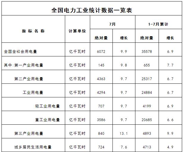 橙電網(wǎng)電力網(wǎng)獲悉,今日國家能源局發(fā)布1-7月份全國電力工業(yè)統(tǒng)計數(shù)據(jù)。