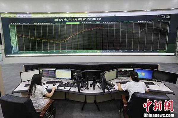 資料圖:電力公司工作人員在對電網(wǎng)統(tǒng)調(diào)負(fù)荷曲線進(jìn)行實時監(jiān)測。中新社記者周毅攝