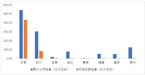 上半年,大型發(fā)電集團水電機組累計上網(wǎng)電量2339億千瓦時,占其總上網(wǎng)電量的16.3%;市場交易電量527億千瓦時,其中跨區(qū)跨省交易電量為243.億千瓦時。上半年大型發(fā)電集團水電上網(wǎng)電量市場化率達到22.5%。