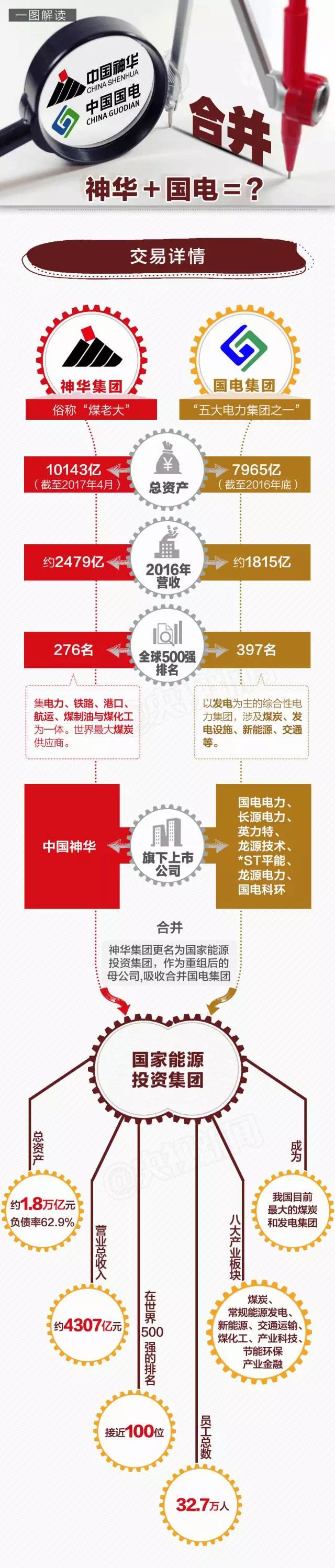 國電與神華實施合并重組,定名為國家能源投資集團有限責任公司,在能源央企中,僅次于中石油、國家電網和中石化,位列中國第四大能源央企。