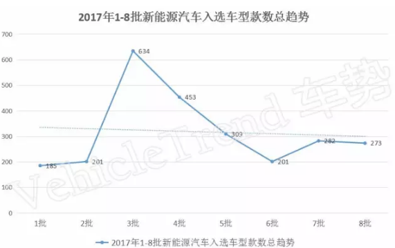 VehicleTrend車勢認(rèn)為,造成第3批入選車型激增的原因在于去年年底新能源汽車補貼新政的出臺。為滿足最新補貼政策,車企加緊研發(fā)符合其技術(shù)要求的新能源汽車,在電池、安全性等方面均有提升。因此,第3批入選的新能源汽車數(shù)量激增。在第3批之后,新能源汽車市場逐漸回歸理性,造成4、5、6批次入榜新能源車型數(shù)量遞減。第6批之后有升有降,6-7批的上升或許與一些新進(jìn)拿到生產(chǎn)資質(zhì)的車企進(jìn)一步拿到銷售資質(zhì)有關(guān),7-8批略微下降或許預(yù)示著我國新能源汽車市場趨于理性,排除政策因素,未來入榜車型數(shù)將難再現(xiàn)暴漲、暴跌的情況。