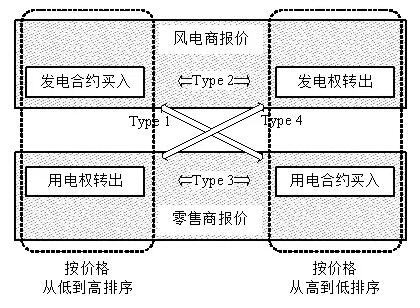本文首先提出了一種與現(xiàn)有市場環(huán)境兼容的時前交易模式,即在每一小時前通過市場交易確定這一個小時的電能價格和供熱電量。交易采用循環(huán)競價的模式,成交關(guān)系如圖1所示。在極端的情況下通過引入火電商來保證供熱的進(jìn)行。