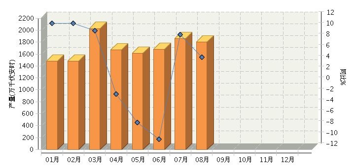 根據(jù)國(guó)家統(tǒng)計(jì)局公布數(shù)據(jù),2016年1~8月全國(guó)鉛酸蓄電池行業(yè)累計(jì)完成產(chǎn)量同比增長(zhǎng)4.25%。其中:8月份完成產(chǎn)量同比增長(zhǎng)4.91%。2016年全國(guó)鉛酸蓄電池行業(yè)月度產(chǎn)量及同比如下圖所示。