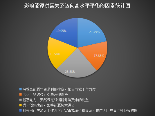 數(shù)據(jù)顯示,各個(gè)選項(xiàng)分布趨于平均,由此可見(jiàn),能源供需關(guān)系的平衡發(fā)展需要行政、生產(chǎn)和研發(fā)等部門(mén)各方面的共同努力,也會(huì)對(duì)能源行業(yè)的方方面面帶來(lái)影響。業(yè)內(nèi)專(zhuān)家表示,眼下,我國(guó)經(jīng)濟(jì)正在著力調(diào)整發(fā)展方式,發(fā)展新動(dòng)能,推動(dòng)舊動(dòng)能改造升級(jí),能源行業(yè)要對(duì)原有存量產(chǎn)能的結(jié)構(gòu)優(yōu)化,能源發(fā)展方式要從粗放式發(fā)展向提質(zhì)增效轉(zhuǎn)變。