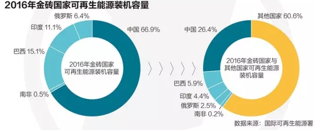 金磚國家可再生能源總量占全球四成,其中我國的可再生能源又占到了金磚國家總量的三分之二,而且比重還在不斷增長。