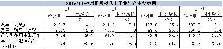 傳統(tǒng)燃油車方面,7月汽車總產(chǎn)量達197.8萬輛,較之6月產(chǎn)量減少近14萬輛,與去年同期相比增幅達8.1%;其中轎車產(chǎn)量89.4萬輛,多用途乘用車58.9萬輛,同比增長分別為26.6%和36.3%。累計方面,1-7月汽車產(chǎn)量達1507.8萬輛,同比增長8.1%;其中轎車繼續(xù)保持同比小幅下滑,同比降幅達2.4%,產(chǎn)量累計650.2萬輛,SUV車型產(chǎn)量累計達442.7萬輛,同比增長37.7%。