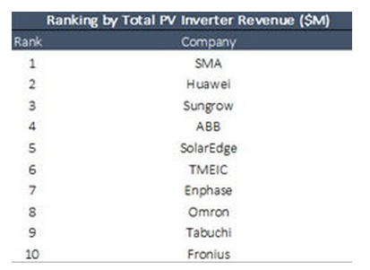 根據(jù)美國GTM Research發(fā)布的《全球光伏逆變器和MLPE格局》報(bào)告,華為和SMA是2015年全球光伏逆變器領(lǐng)先廠商。