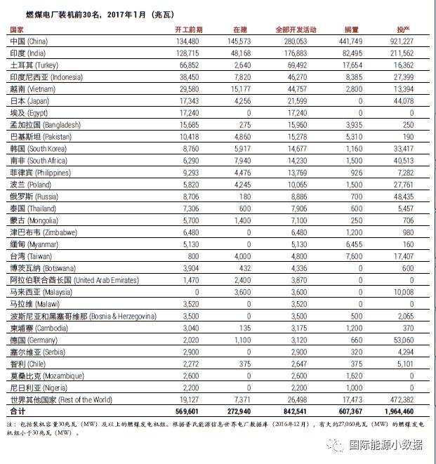 根據(jù)“全球煤炭研究網(wǎng)絡(luò)”的跟蹤研究,2017年1月,全球開發(fā)中的燃煤電廠裝機(jī)數(shù)量相比2016年1月出現(xiàn)了大幅度的下降。包括處于開工前期準(zhǔn)備的項(xiàng)目降低了48%,新開工項(xiàng)目降低了62%,在建續(xù)建項(xiàng)目降低了19%,已完工項(xiàng)目降低了29%。