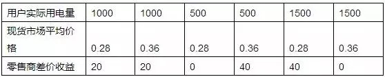 假設(shè),零售商在電力中長(zhǎng)期批發(fā)市場(chǎng)與發(fā)電商簽訂了電量1000千瓦時(shí)、電價(jià)0.3元/千瓦時(shí)的雙向差價(jià)購(gòu)電合同;同時(shí)零售商與用戶簽訂了同一交付時(shí)間段的電量1000千瓦時(shí)、電價(jià)0.32元/千瓦時(shí)售電合同(假定輸配電價(jià)為0)。