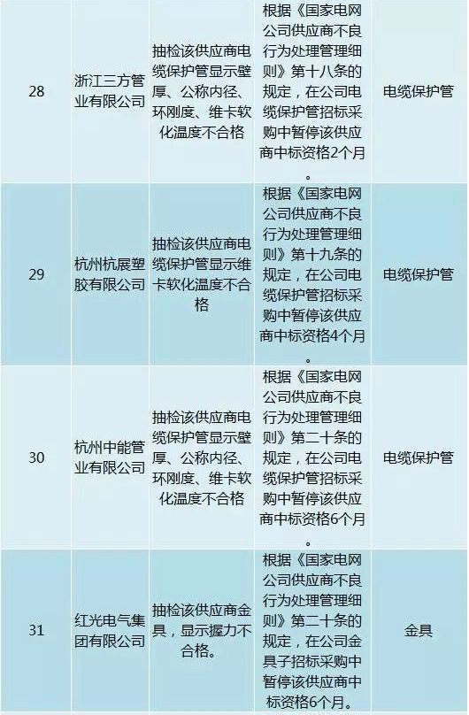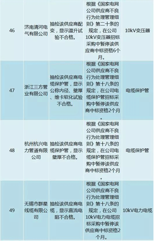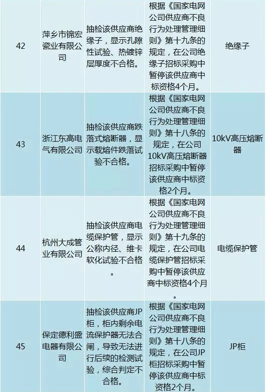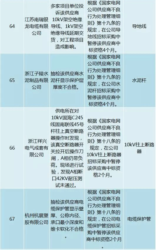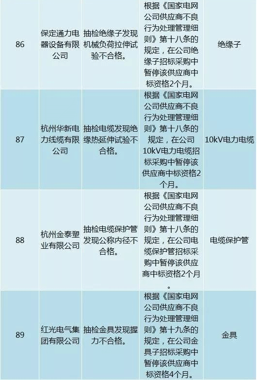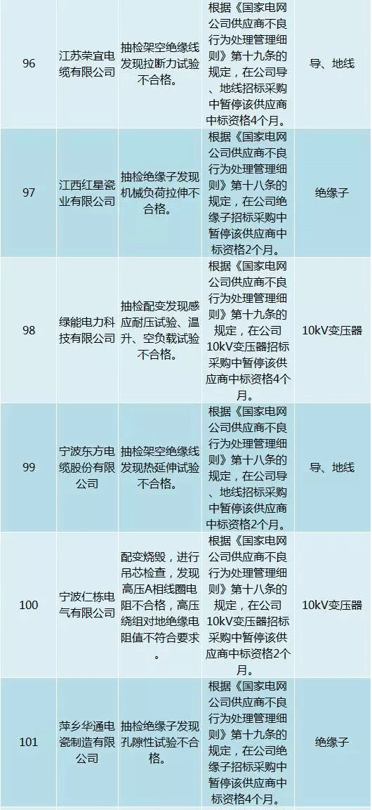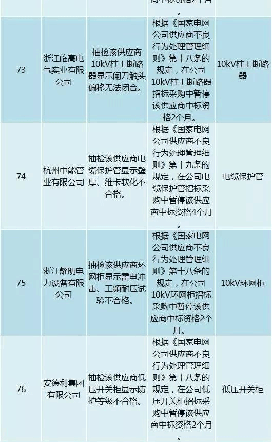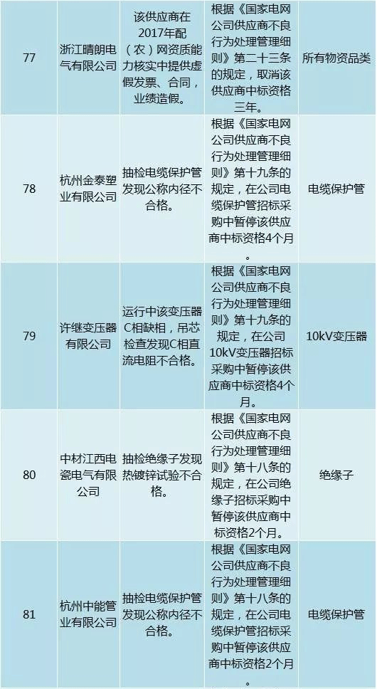 為促進(jìn)供應(yīng)商誠信履約,保證產(chǎn)品質(zhì)量,確保電網(wǎng)建設(shè)順利進(jìn)行及安全可靠供電,依據(jù)《國家電網(wǎng)公司供應(yīng)商不良行為處理管理細(xì)則》(以下簡稱《細(xì)則》)的有關(guān)規(guī)定,對出現(xiàn)重大產(chǎn)品質(zhì)量問題、履約不誠信等問題的供應(yīng)商進(jìn)行了處理。本次處理涉及10kv變壓器、高壓熔斷器等物資,具體處理情況如下: