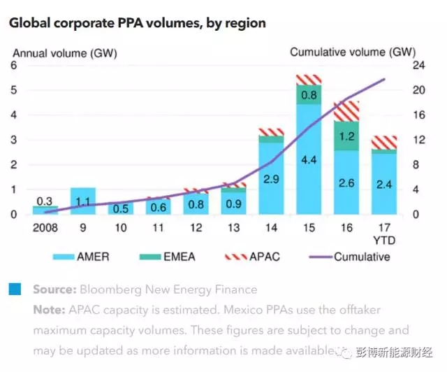 2017年9月到10月,全球最大的購電協(xié)議合同來自Facebook,總規(guī)模為200MW。