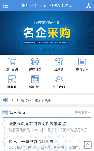 一、通過清晰明了的首頁入口,您能即時(shí)查閱電力行業(yè)的招標(biāo)采購信息,并完成注冊、采購詢價(jià)查詢、中標(biāo)查詢、企業(yè)資質(zhì)查詢、業(yè)內(nèi)精選新聞資訊等功能,一鍵直達(dá)你所關(guān)注的內(nèi)容!